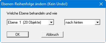 Über die Funktion "Ebenen" können Sie gleichzeitig alle Objekte einer Ebene in der Darstellungsreihenfolge nach vorn oder hinten rücken. Wählen Sie dazu in der Dialogbox, die Sie beim Klicken auf das Symbol "Ebenen" erhalten, auf den Knopf "Reihenfolge". Sie erhalten beispielsweise folgende Dialogbox: