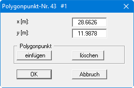 Bei Polygonen wird im blauen Balken die Nummer des angeklickten Polygonpunktes angezeigt, wie in der folgenden Dialogbox zu sehen ist: