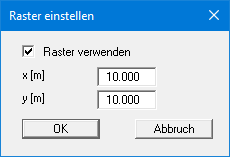 Sie können Ihre Zeichenobjekte in einem definierten Raster für x und y einfügen oder zeichnen. Klicken Sie dazu auf das Symbol und aktivieren Sie in der Dialogbox über den Schalter "Raster verwenden" die Eingabeboxen für die Rasterabstände.