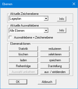 Durch Aktivierung des Schalters "Auswahlebene = Zeichenebene" wird bei einem Wechsel auf die nächsthöhere oder niedrigere Zeichenebene die Auswahlebene automatisch angepasst. Sie können einen solchen Wechsel sehr schnell über die Symbole "Ebene hoch" und "Ebene runter"